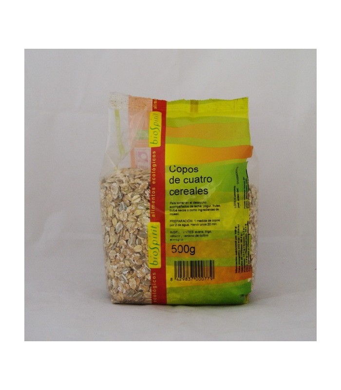Para tomar en el desayuno acompañados de leche, yogur, frutas, frutos secos o como ingredientes de muesli Preparación: 1 medida de copos por 2 de agua. Hervir unos 20 minutos. Ingredientes: avena*, trigo*, cebada* y centeno* * ingredientes ecológicos