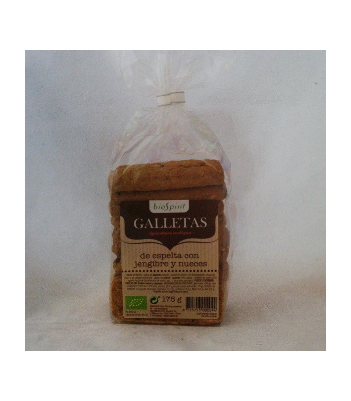 Galletas de espelta con jengibre y nuez ecológ., 175 gr.
