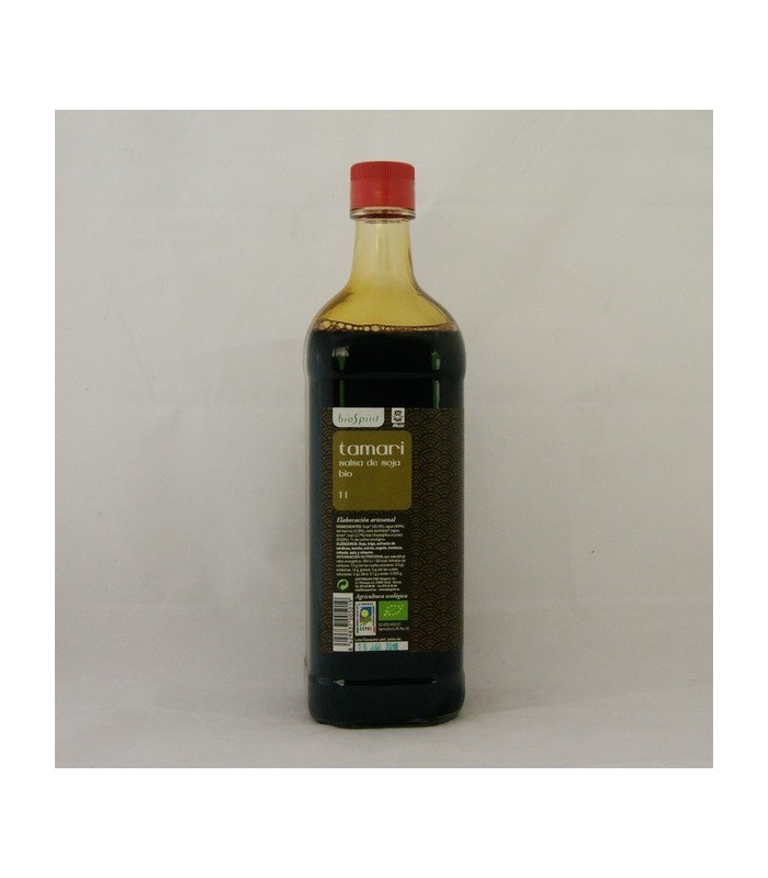 Ingredientes: soja* 45,5%, agua 40% sal marina 8,8%, sake destilado* (agua, arroz* , koji) 2,7%.